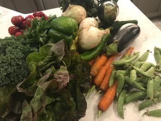 Yesterday was possibly my favorite CSA share ever. I typically do a half share so there are weeks when I miss some of my favorites but this week was perfect. Peppers, onions, eggplant, squash, herbs, oh my. I had a flashback to last year when the CSA gave me all of the ingredients for one of my favorite recipes: America’s Test Kitchen’s Walkaway Ratatouille. I knew I had to make it last night even though it feels more like a hearty Fall dish. Luckily, I had no other plans for dinner so it was fun to meal plan on the fly. Since we didn’t have any tomatoes yet, I stopped at the Caldwell Marketplace on the way home for some canned tomatoes, garlic and a loaf of french bread. I still had some Wrong Direction farm salted butter in the fridge which was perfect on top of the crusty bread. I went from a potential takeout dinner to a wonderfully local homemade dinner. (To view my post from 2017 with a link to the recipe, click here.)