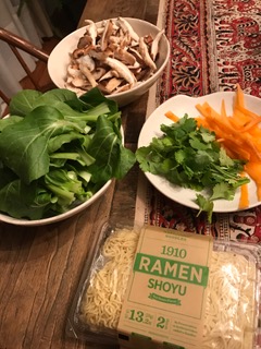 Not sure what to do with all those little bok choy’s we got this week? Put them in some soup! I got this packaged ramen from Whole Foods which involves boiling water for the noodles and soups for a few minutes (yay!). I added the bok choy, carrots, shiitakes and cilantro and it was delish!