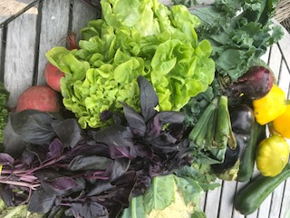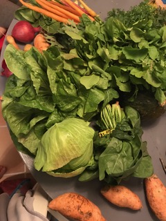 Like Shana, Bob likes to pre-wash and cut his frisee into smaller bite size pieces and add them to each salad he makes throughout the week, rather than trying to eat the frisee on its own. In fact, Bob decided to use Shana’s tip from last week and washed, cut and bagged all of this week’s greens right away on Tuesday. It may take extra time on CSA pickup day but you’ll be happy you did all the prep later in the week when you can easily throw together a side salad alongside grilled meat or maybe as an entree with your favorite toppings.